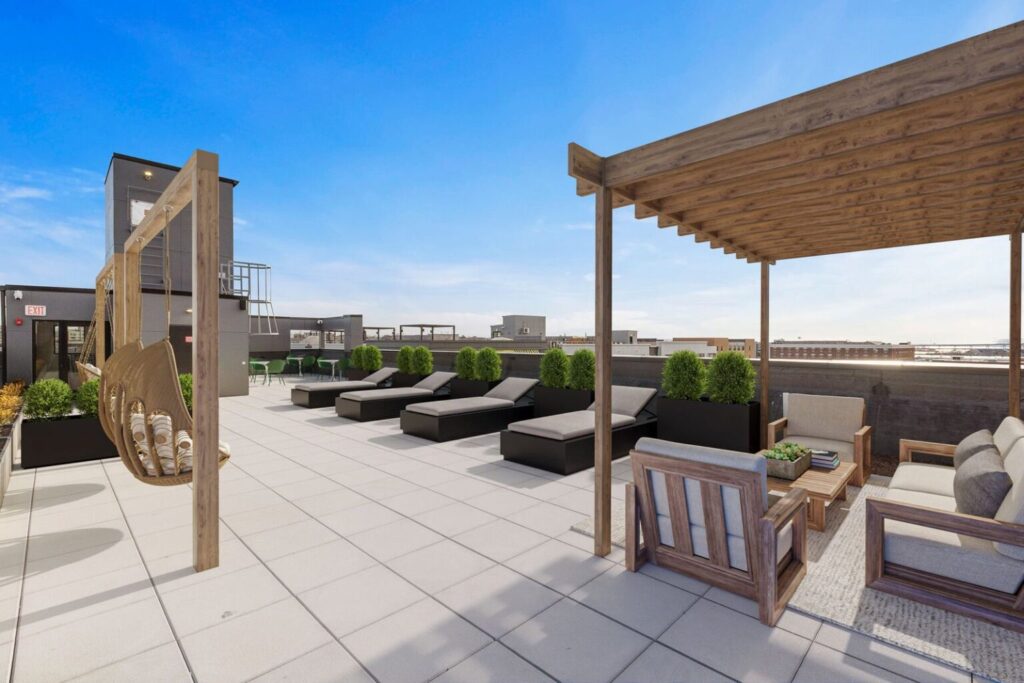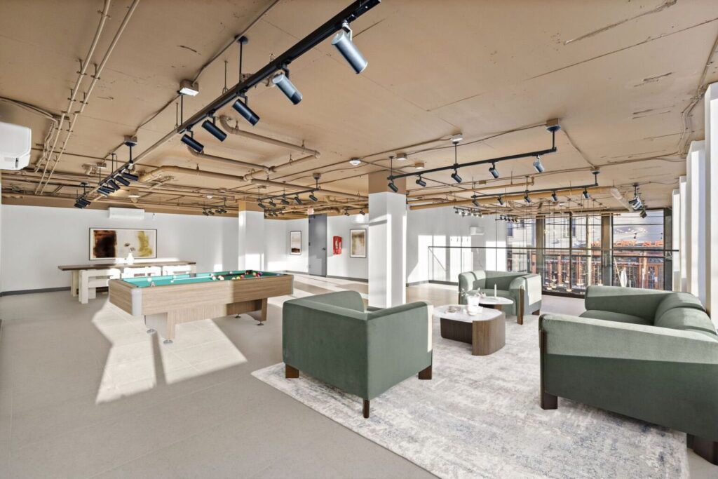 Shared amenities within the building further elevate the residential experience. A landscaped rooftop terrace offers skyline views and dedicated lounge and dining areas, while a fitness center and co-working spaces support active and remote-friendly lifestyles. Secure access, bike storage, indoor garage parking, and on-site maintenance provide additional convenience and peace of mind for residents seeking a turnkey living environment.