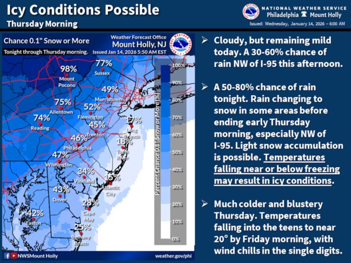 As night settles in, skies across the Garden State remain mostly clear, but the lack of cloud cover is allowing heat to escape rapidly. Actual air temperatures are expected to bottom out between 20 and 24 degrees, though it will feel far colder. Gusty winds reaching up to 30 miles per hour are pushing wind chill values down into the single digits and teens, especially in exposed areas and higher elevations.
