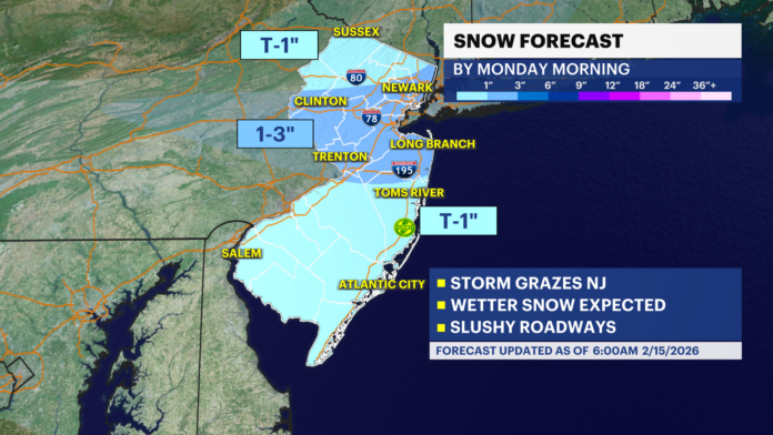 New Jersey residents are preparing for another round of winter weather as forecasters issue a light snowfall alert for Sunday night into early Monday morning, with northern parts of the state expected to receive between one and three inches of snow. While not projected to be a major winter storm, the system is expected to create mildly disruptive conditions, including slick roadways, slushy surfaces, and overnight travel concerns across several regions.
