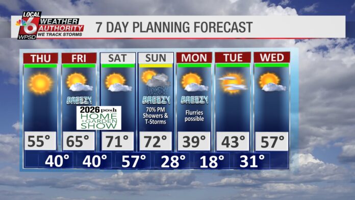 Although Friday’s weather will feel calmer than Thursday’s stormy transition, the air mass settling over the region will still carry a late-winter chill.