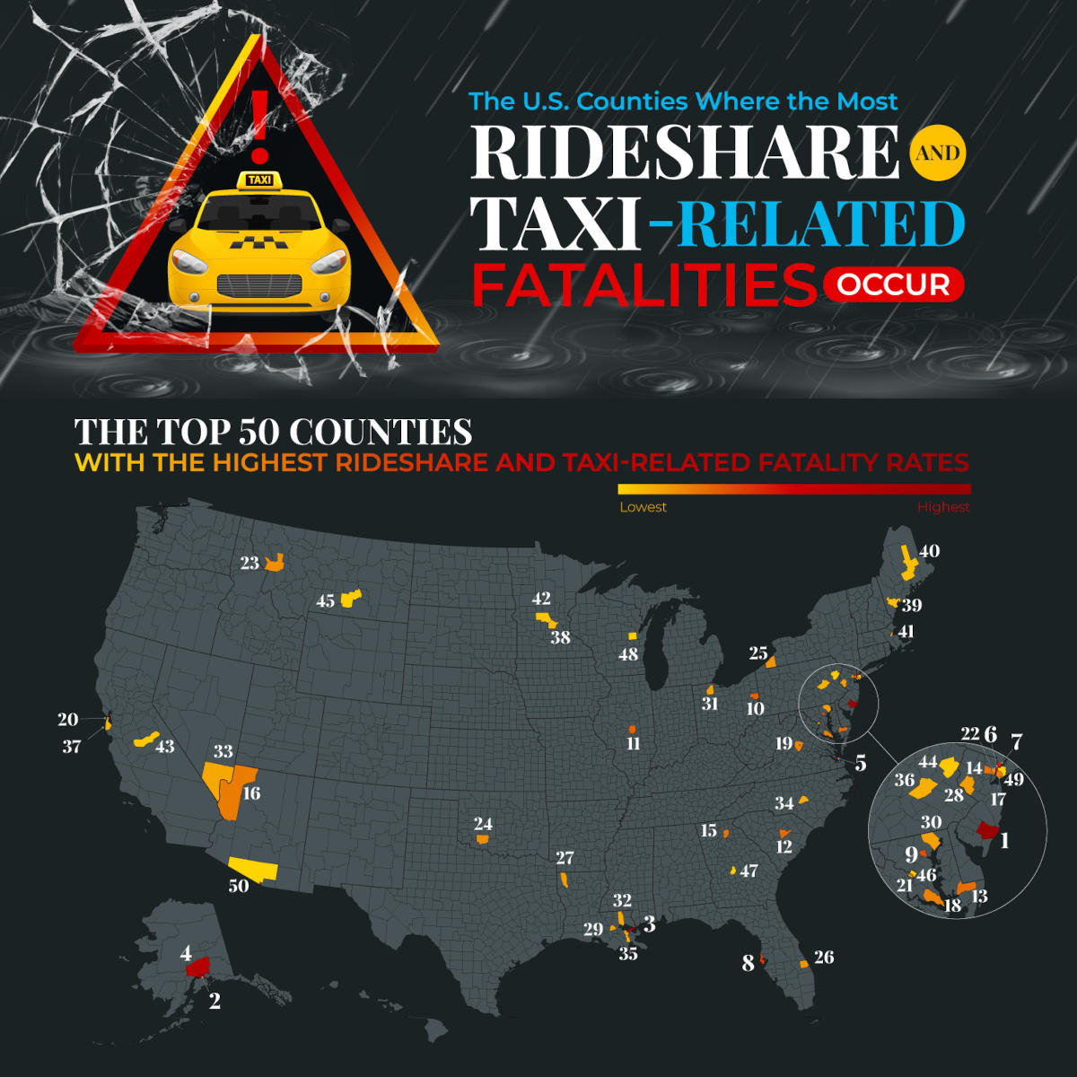 A recent study by Blume Forte reveals troubling trends for rideshare and taxi safety, placing New Jersey and neighboring New York counties among the highest in the nation for fatal incidents. Atlantic County, NJ, in particular, emerged as the area with the most significant rates of deaths linked to rideshare and taxi travel, highlighting concerns over regulation, driver safety, and passenger protections.