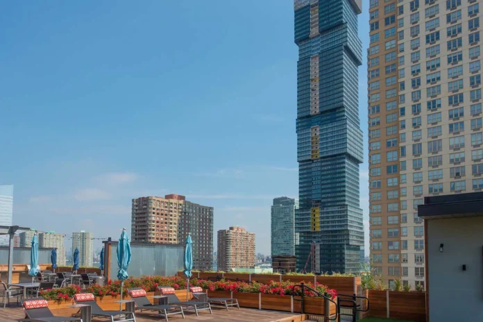 Crowning the structure is an expansive shared rooftop deck that delivers unobstructed panoramic views of the Manhattan skyline, stretching from Billionaire’s Row and the Empire State Building to the World Trade Center. The rooftop is designed to function equally well for entertaining and quiet evening retreats, offering residents an outdoor extension of their living space high above the city.